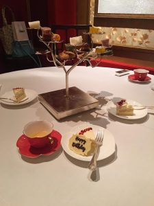 當我哋飲飽食醉,準備叫侍應哥哥上蛋糕。我好天真以為香宮送嘅切餅費會同一般酒樓嘅切餅費一樣。點知原來香宮嘅服務,係會將蛋糕放響一隻有顏色嘅碟上面,再插靚靚蠟燭,而唔係淨係拎個新淨嘅蛋糕碟咁簡單。