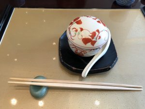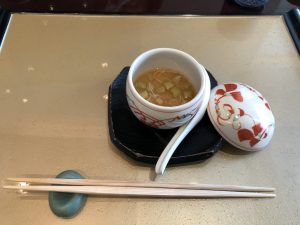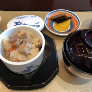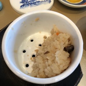 第七道菜係蒸飯,懷石料理果然係食食具,所以要俾個close up個飯盒蓋。有雞肉同香菇嘅蒸飯、漬物、麵豉湯,蒸飯用嘅係糯米,每筷子夾落去拎上嚟都係黏黏der,食食吓仲發現碗底係有氣孔,真.隔水蒸飯。