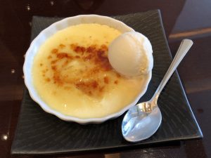 最後一道係焦糖燉蛋加雲呢拿雪糕球,呢個比起各大自助餐嘅焦糖燉蛋簡直天淵之別,係人生目前食過最好食嘅一次,沒有其中之一。蛋入邊加咗雲呢拿黑子,但唔會太膩,碟身較薄,可能用嘅糖都係靚糖,烤出嚟嘅焦糖好香,再加埋用咗嘅雲呢拿雪糕,太太太creamy!