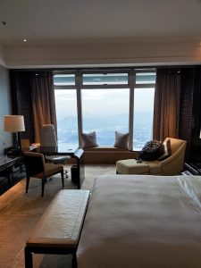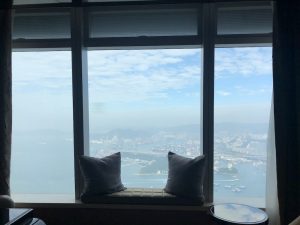 當日我放左工,滾水淥腳咁衝去酒店,寶寶都累了,亦係唯一一次無請假享受盡酒店available嘅時間,所以結論係以後staycation都一定要請假,唔可以比OT浪費咗享受酒店嘅時間。幸好小寶早到左,可以向天黑前影一影離地嘅景色。