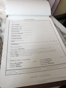waiter哥哥會比成個下午茶嘅餐單我哋睇,我見海南雞飯都只不過係三百幾蚊,咁都同M88樓上嘅日本定食價錢差唔多姐。