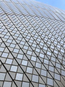 歌劇院外牆上的形狀與魚網有關,是閃亮亮的