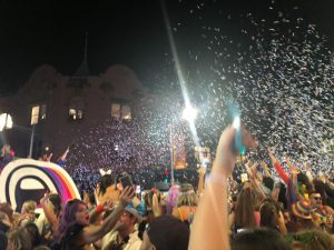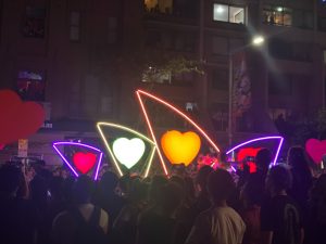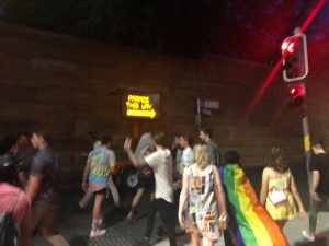 明明是一條街後的距離,但我們整整走了45分鐘。中途經歷過單向人流管制,體會到人生百態,有人死命護着自己排隊的位置、有人用盡吃奶的力去撞開前邊人流、有人(用英語)拼命叫喊指前方有朋友在等,所以要打尖⋯⋯甚至有人推跌欄杆,跑過對面街⋯⋯這些都是若干年後值得回味的經驗,那一條有著彩虹顏色的巡遊街⋯⋯