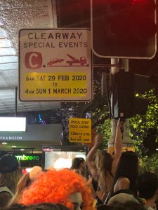 在上火車時,已經覺得有點不妥,一反平時我們外出的經驗,為什麼傍晚的年青乘客會比較多?然後在火車上,我們看見旁邊都是喧鬧的年青人。有些在高談闊論、有些在比賽唱歌(?)、有些帶著汽水膠箱(???)、有些在換衣服(?!),換上了閃亮亮的淺藍色珠片衣服!他可是男的!我們就在想,難道他們都是要去參加Australian Got Talent之類的嗎,趕快在網路上搜一下,結果404 Not Found。