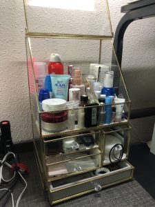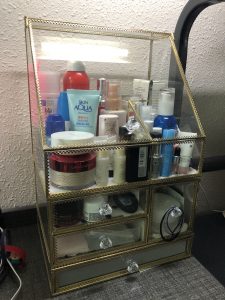 下層係首飾格,所以放最低,主要要黎放橡筋圈,當枱面有雜物嘅時候就開唔到⋯⋯