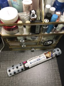 早排仲向$12蚊店買左個新玩意,係波點紋既軟膠粒。鋪塊軟墊向逐格化妝盒既玻璃底,可以好好放低樽樽罐罐,唔會嘈亂把閉⋯⋯