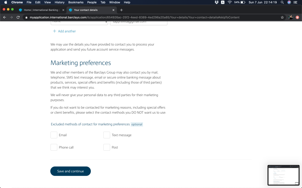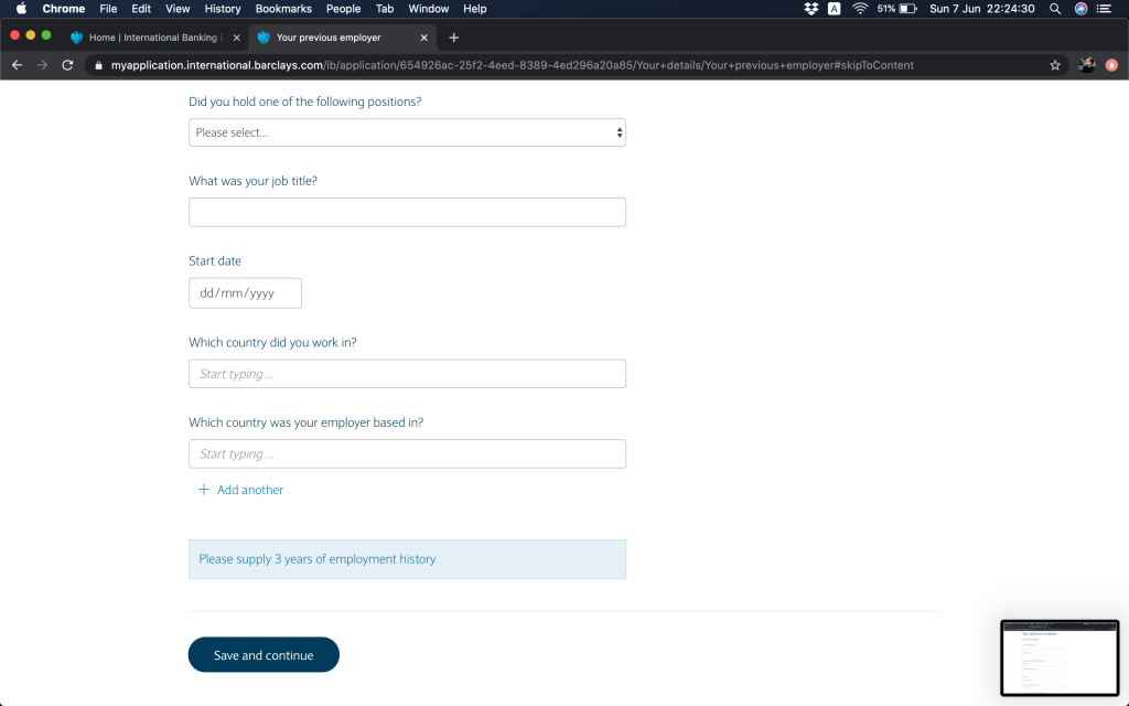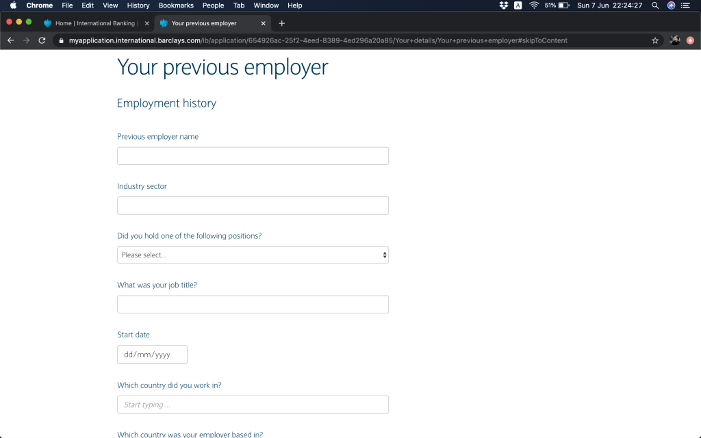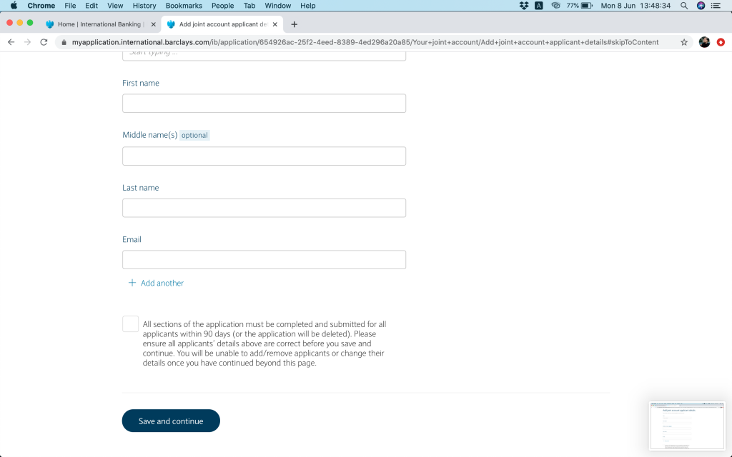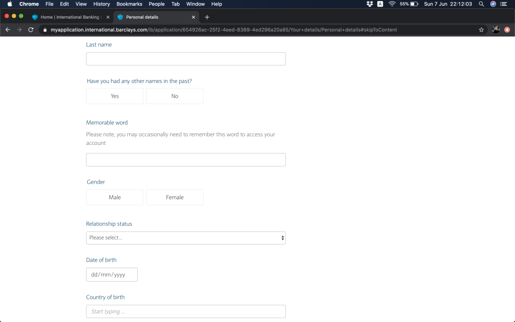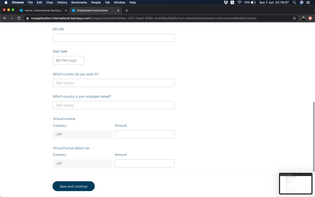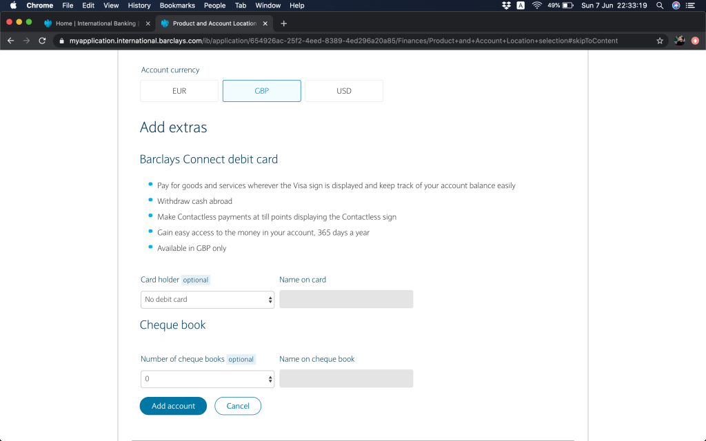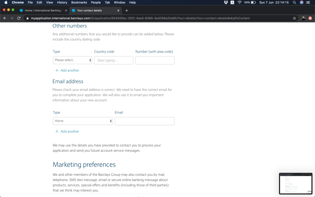 跟住就問返銀行帳戶資料,(1)本身有冇持有英國Barclays銀行帳戶,(2)今次係自己申請定係多過一個帳戶持有人,(3)有冇申請緊Barclays按揭(上邊咪問過囉,你答咗,呢度就會幫你自動選擇)。