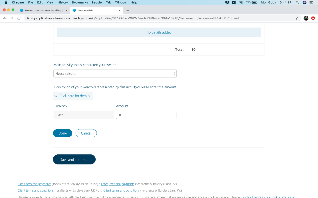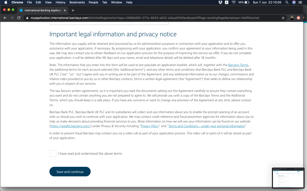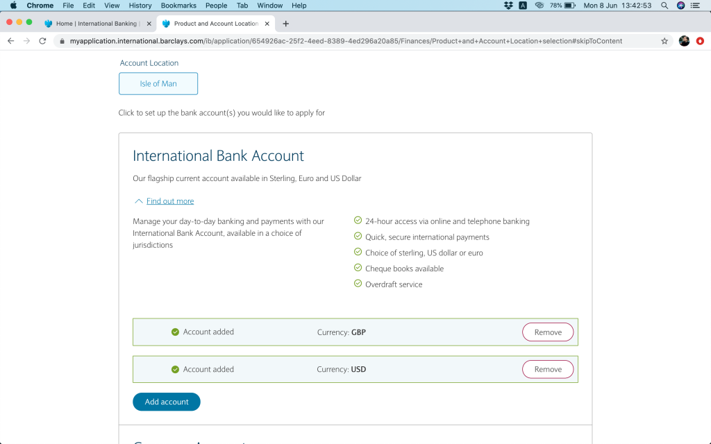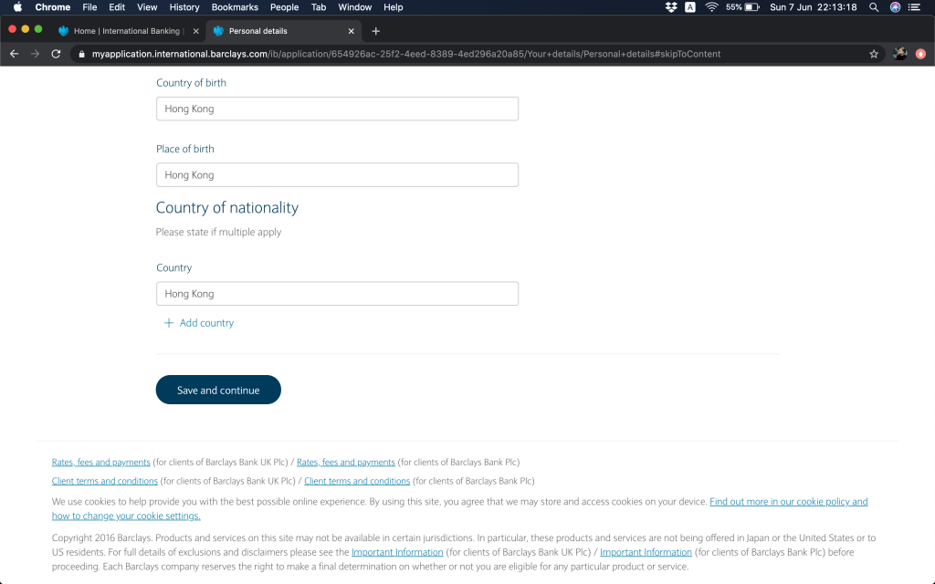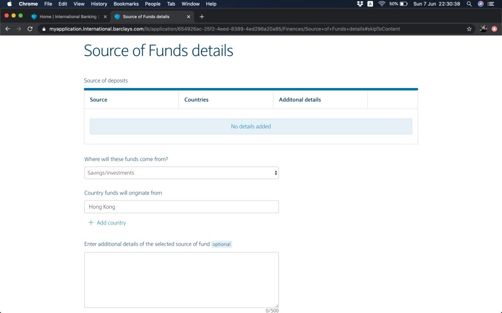 更新:2022年3月,收到Barclays電郵,話要提升最低存款額,GBP100,000(或等值貨幣)(~HKD1,024,000),meet唔到就要比GBP40(~HKD411)月費。RM服務仲要GBP250000(~HKD2,560,000)先會提供。我估應該都真係幾多香港人去申請, 所以佢哋要cut客去維持返佢服務質素。唔緊要啦,我哋係窮架啦,所以做左幾日功課,睇下要點轉窮人離岸戶口。