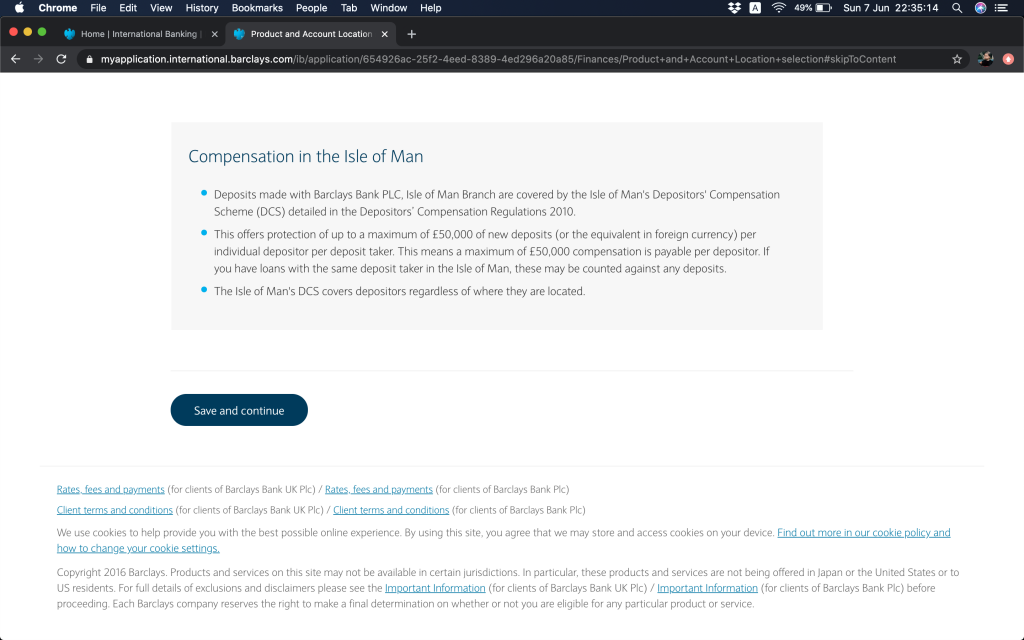 幾經辛苦,終於嚟到揀戶口內容。呃,其實工作上都只不過係見過Isle of Man幾次,根據維基百科,佢坐落響英國同愛爾蘭中間嘅一個島仔。