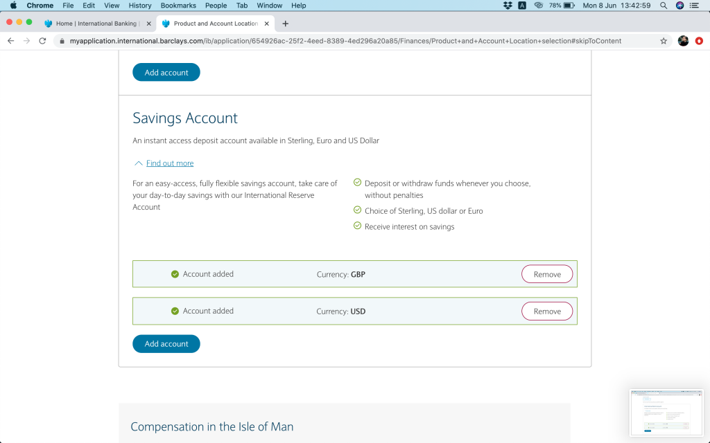 如果冇戶口第二持有人,完成頁面將會顯示一個Isle of Man嘅地址。