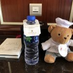 床頭有隻熊熊。曲奇牛奶嘅牛奶已經響迷你雪櫃備妥,同九香嘅長方形盒裝牛奶唔同,呢邊係屋仔牛奶。