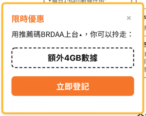 直到去到付款嗰一版,佢會有兩個位俾你填優惠碼,一個我就填咗喺網頁見到嘅+4GB優惠碼,另一個就填咗小寶嘅推薦人優惠碼。推薦人會響接下來第二期月費、第四期月費各減$50!就咁就賺咗$100!而我作為被推薦人,第二期同第四期數據會各增加2GB,雖然冇得滾存到下一期,當Bonus都開心嘅。