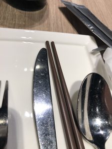 仍然都係一樣啦,疫症期間佢比多左個長方形餐盤放餐具,但仍然刀叉都有污跡,所以用之前都係要自己清潔。安全至上。