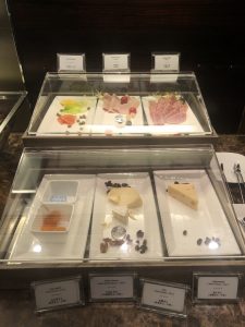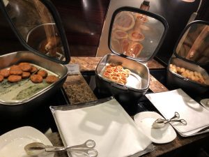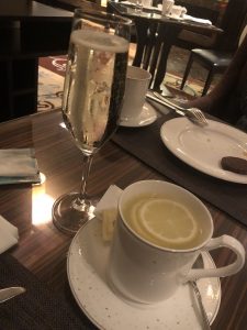 雞尾酒時段酒精free flow,包捨prosecco、sparkling wine,但唔包括香檳。可惜我哋兩個都唔係太好酒。比起下午茶,食物種類多咗好多。仍然都係好可惜成排凍盤,芝士沙律,我都唔敢食。真係有啲炆憎。