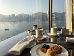 上回提到,住九龍香格里拉upgrade左Horizon Club privileges,所以可以入豪華閣食下午茶、雞尾酒、早餐。第一日已經問咗豪華閣嘅侍應,如果早餐時段滿咗就要落樓下Cafe kool,所以已經問定佢幾點鐘係冇咁繁忙。特登為咗要食豪華閣嘅早餐,7:30就起身,真係去旅行都冇咁早。