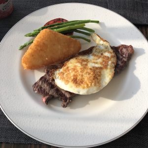 講笑咩,我期待咗咁耐,唔使睇Menu 㗎啦,牛扒啊唔該。小寶要咗個西京燒三文魚。哥哥問我要食咩蛋,我個腦一時轉唔嚟,「我要食熟嘅蛋,即係反轉都要熟嘅」。小寶問係咪荷包蛋,荷包蛋中間係生㗎嘛。我再同哥哥講,唔係太陽蛋、唔係炒蛋。哥哥話:哦,你要食熟蛋。係呀係呀。