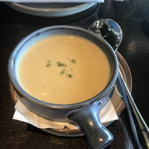 個湯濃稠到,飲完已經有啲飽。凱撒沙律入面芝士味鹹香味好出,雖然冇得食沙律,但我有係咁撩啲芝士嚟食。