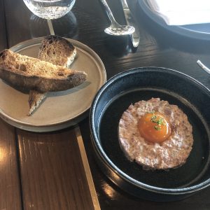 跟住上咗另一個前菜,牛肉他他,見到佢上面隻生蛋,就知唔啱我食啦。