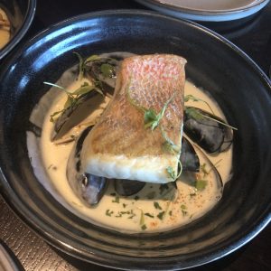 前後嗌左四個餐,左起黑松露意大利飯,右邊係Snapper鯛魚,墊底仲有好好食嘅鮮奶油汁青口。左邊以為份量好少,但食咗幾啖就開始滯。最後我食咗好多隻奶油青口,好開心。