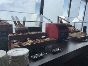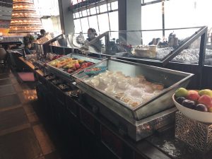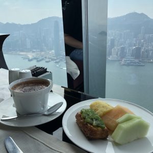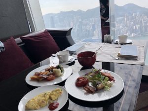 拎左雞粥,加肉鬆、加蔥、加脆脆,咩都要多。要奄列,咩餡料都要。又追加燕麥粥。炸雞好乾,比個樣呃咗。講到食物嘅質素,就唔夠港島香格里拉嚟,但始終呢一間餐廳離地啲,可能要運送好味嘅嘢食上嚟咁高,係有成本掛。又或者係人哋話搭飛機嘅時候,味覺會遲鈍咗,唔通係因為我哋食得太高?