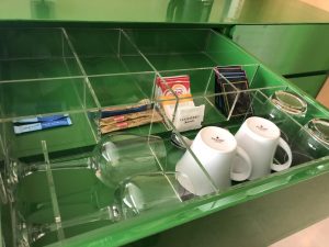 茶水間平台得一個插頭位,搞到要向廁所洗手盆隔離煲水。一邊煲水、唔可以同風筒一齊共用。