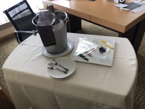 第一次向酒店試過,打零字無人聽。又唔知點解12點嘅時候,有電話打過嚟吹我哋還房。等到晏晝一點幾,終於有人安排我哋轉去Suite。