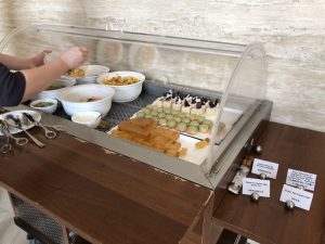 轉左喺地下,冇風景,齋嘢食。仲有因疫症,每一房可以拎三個食物盒夾嘢食走。