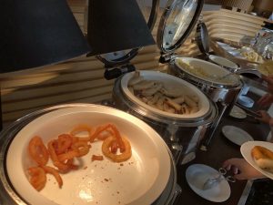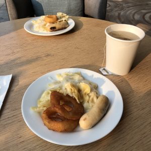 熟食唔多,炸洋蔥圈個皮好硬,腸仔唔係我杯茶,蝴蝶粉加白汁都叫做飽肚嘅。然後有Lemon Ginger嘅茶包,呢個抵讚。