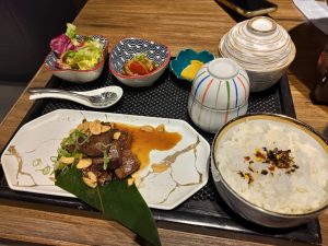 鵝肝本身夠大塊,仲有成兩塊咁多,我同小寶一人一塊都食得好過癮。我完全係將鵝肝流落去嘅油,撈勻成個飯咁樣去食,真係爽歪歪。小寶嘅和牛定食都唔弱,每一粒都好人牛味,仲有蒜片伴碟,食落有日本嘅感覺。