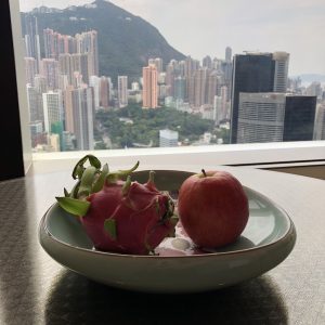 一入房就睇下有咩生果先。有火龍果算幾好喎,我地要求好低。