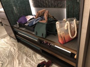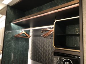 右手邊仲有個衣帽間,應該取代埋行李假嘅位置,就算我哋啲嘢亂咁劈晒喺上面都唔覺得凌亂。