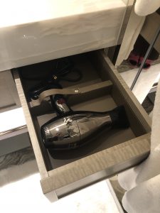有洗手盆下面冇板嘅,我哋應該唔會整爛。房內風筒會唔會有啲重。