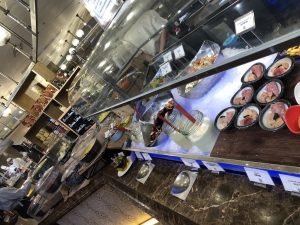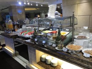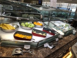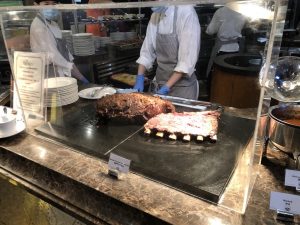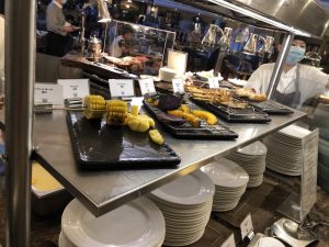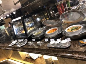 然後喺lounge食嘅嘢都未落格,就要落樓食晚餐自助餐。仲記得安排咗坐響個大螢幕下面,一邊食、大螢幕嘅光係咁殘住隻眼,並唔係一個好好嘅用餐體驗。如果冇記錯,鵝肝係有時供應,拎晒就要等下一round。半邊龍蝦同鮑魚就好似人人卷去拎。