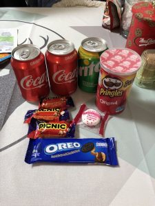 然後就去重頭戲,入lounge,成個package最抵嘅一環。都有幾樣熟食小食,有蛋糕仔,任飲茶包、咖啡、果汁、汽水、甚至酒。仲有picnic、棉花糖、曲奇餅,最緊要係仲有蝴蝶酥,我食咗勁多回本。我哋基本上無返過房乜滯,全程齋坐喺度chitchat。