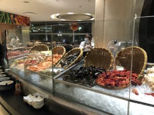 想食早餐個場同一個位置會有晚餐自助餐,我同小寶食完牛扒之後屎窟痕走來望吓。係咪冇乜人食刺身點解個玻璃櫃入邊淨咁多。
