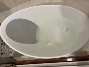 BB個b duck沖涼盤真係要用好多水,又驚浸咗隻BB落水。所以$100響carousell買左個Shnuggle月亮盆(英國品牌),又慳水又唔使用力。「它適合新生兒至12個月大的寶寶使用。獨特的臀部凸塊設計可穩固支撐寶寶,安全可靠」