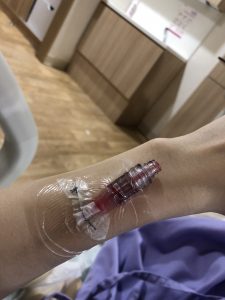 23:00 雖然打咗豆豆,但係耐唔用嘅話,啲血會凝固咗,所以要用生理鹽水通豆豆。