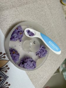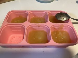 D189: 再食冰左defro嘅蘋果蓉,到晚上QQ嘔返曬出黎。食物格入邊有公仔,好得意, 但係個食物格好難洗,我都係用洗奶樽蔬果液洗。