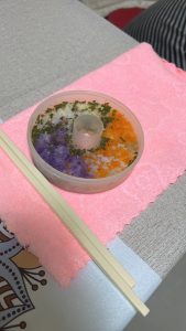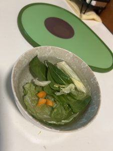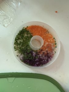 D226: 今日直頭落埋紅蘿蔔同埋紫椰菜,mix落去。仲有完整一塊紫椰菜比佢梅,食到成個咀變咗紫黑色,好正。