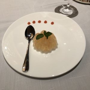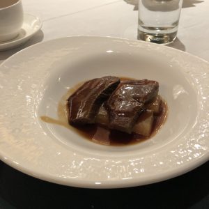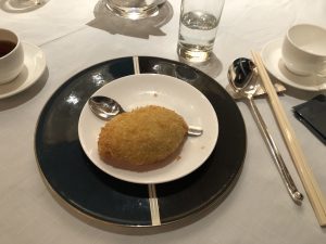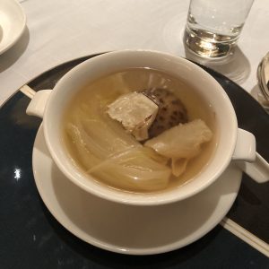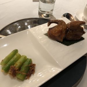 一嚟第一道菜比隻鮑魚仔你,然後旁邊有舊叉燒,同埋黑木耳,微溫。當年我同小寶響婚禮晚宴嘅唯一要求「餸菜要夠熱」,sales仲話明閣一定會保持水準。估唔到明閣為咗要做母親節呢一晚staycation package,晚節差啲不保。