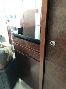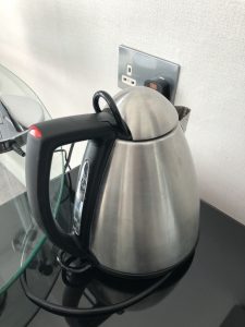 水壺同埋櫃面都污糟。連雪櫃邊塊板都有好多污跡,我哋用消毒濕紙巾係擦得甩嘅,所以純粹係清潔做唔切。