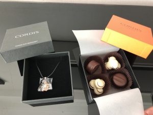 拆禮物時間,Greeting送嘅朱古力同埋水晶吊墜頸鏈。