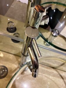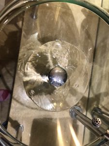 洗手盆嘅玻璃弧度可以出到完美漩渦。我承認我好唔環保,淨係睇呢一個漩渦,我諗我哋可以睇成幾分鐘。如果唔係怕太浪費食水,我哋可以睇一日。