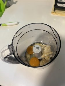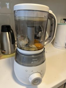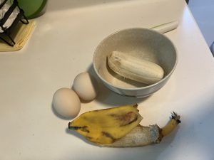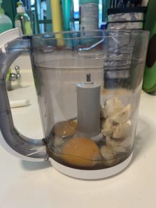 材料準備,屋企又係得番大蕉⋯⋯但係唔驚,今次我哋有Avent攪拌機。都有諗過好唔好分開蛋白同蛋黃,見人哋話如果父母都冇敏感,其實BB七個月後,都可以慢慢逐步試吓蛋黃同蛋白。QQ已經試過少少蛋黃,所以不如試一試佢。