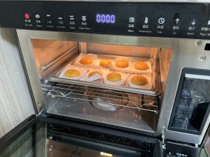 發酵完成之後用中火蒸20分鐘再焗5分鐘。