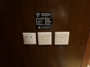 房門隔音有啲差,聽到走廊有人聲。有人撳鐘呢,房內又唔係太聽到⋯⋯好奇怪。