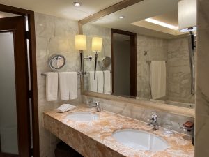 右邊係雙洗手盆,水龍頭有啲太實,比較難開。牙刷好軟,好似刷唔乾淨咁。