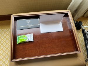台上有托盤放消毒濕紙巾,口罩套。發現冇生果。