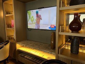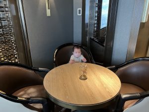 因為QQ訓左,我地set 好個場,放左部電話,打住facetime咁影住佢,然後上一層入lounge XD 點知一坐底就聽到QQ喊⋯⋯又要落樓接佢XD