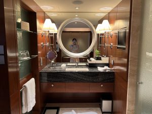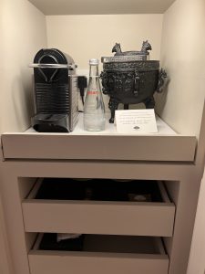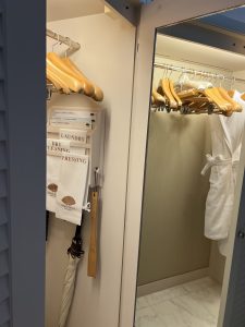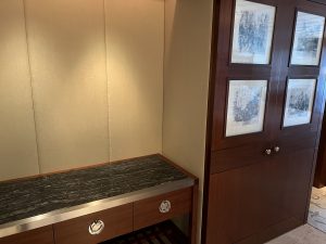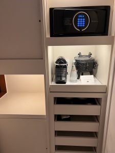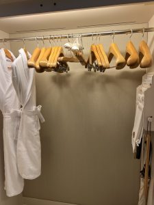 左手邊係衣櫃/行李位,近門邊個櫃好有心思,門口有個獨立嘅窗口櫃,好似信箱咁。如果order左amenity,職員會由信箱櫃放入黎,唔需要向房等職員開門,只需要得閒去開信箱咁收件就ok。但都有缺點,部分長輩房間因為慣左要等人送野黎,一直唔知道人地已經送左入信箱櫃⋯⋯